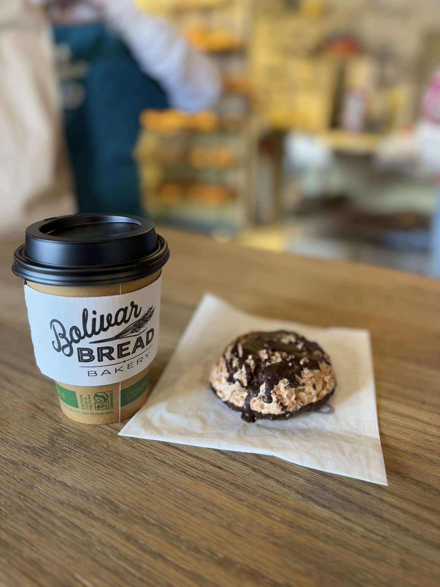 I was in the mood for a sweet treat when I visited Bolivar Bread Bakery, so I ordered, on the recommendation of their staff, a chocolate dipped coconut macaroon. And I’m so glad I did! The chocolate tasted on the darker side to me and the coconut was fresh. It wasn’t overly sweet, and my toddler even loved it! I did not try any of the bread, but the everything bagel sourdough bread was recommended to me by several people, so I do plan to go back to try it soon. They have many other bread options and pastries, too. I also noticed that the bakery has gluten free and vegan options.