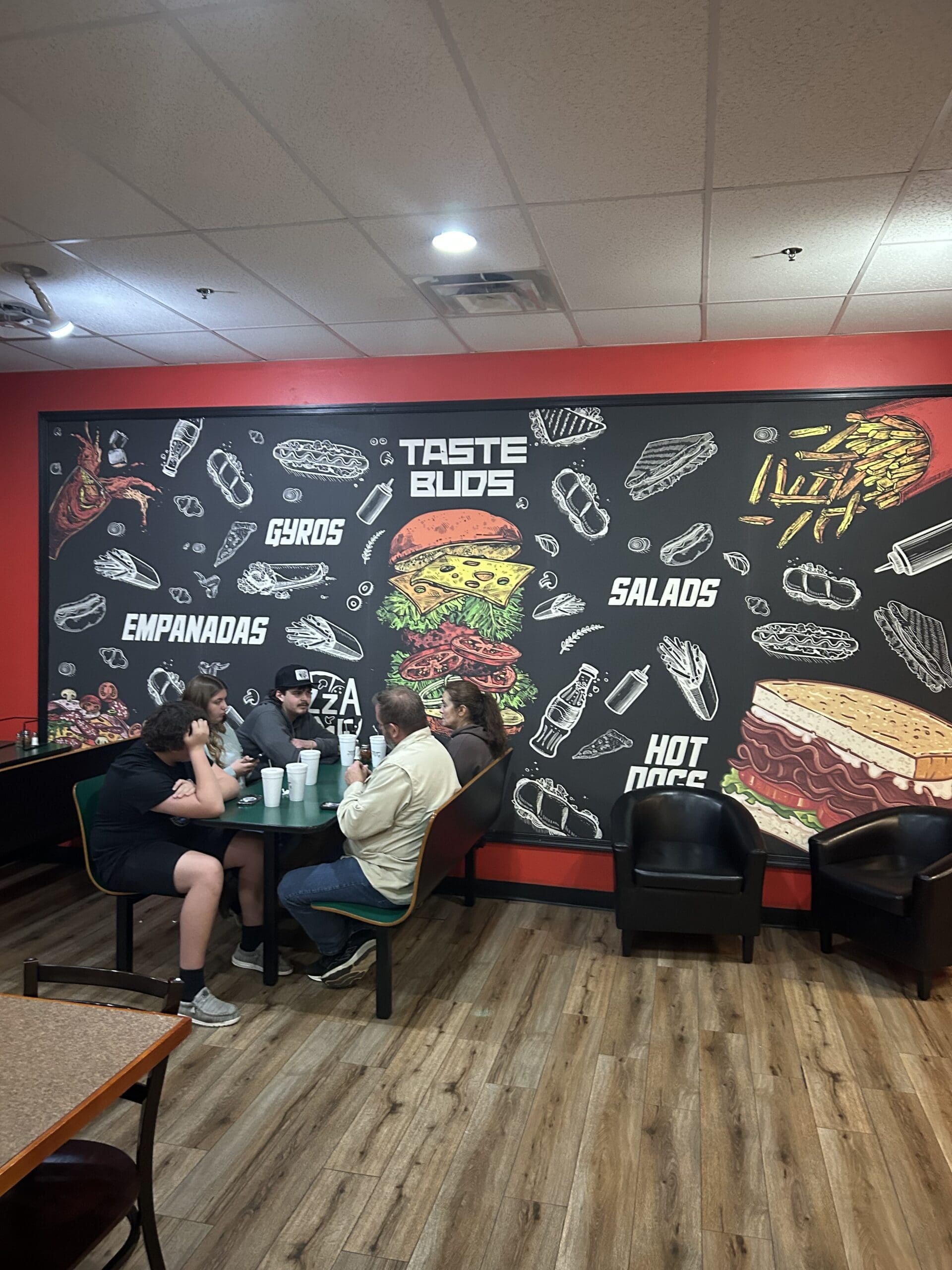 Taste Buds has a lot of character. Their physical location is always clean, and they have some really cool theming on the walls. It is bright and fun inside, unlike many pizza shops that solely focus on delivery and takeout. You can tell that the owners took the time to make the shop feel fun and inviting.
