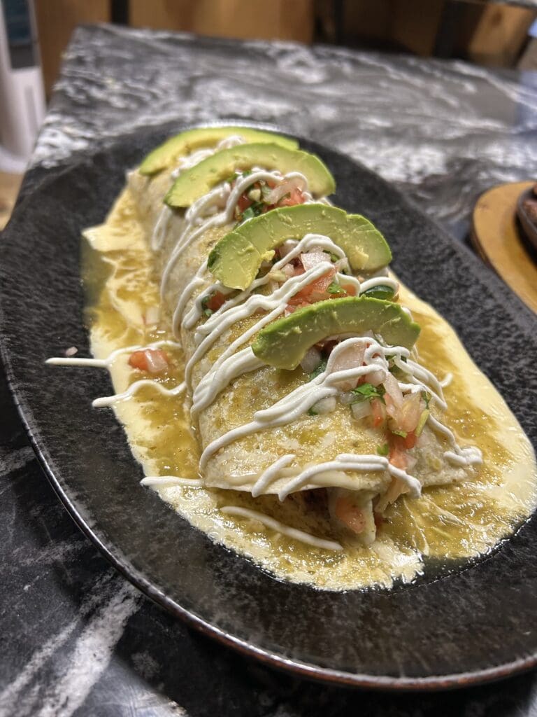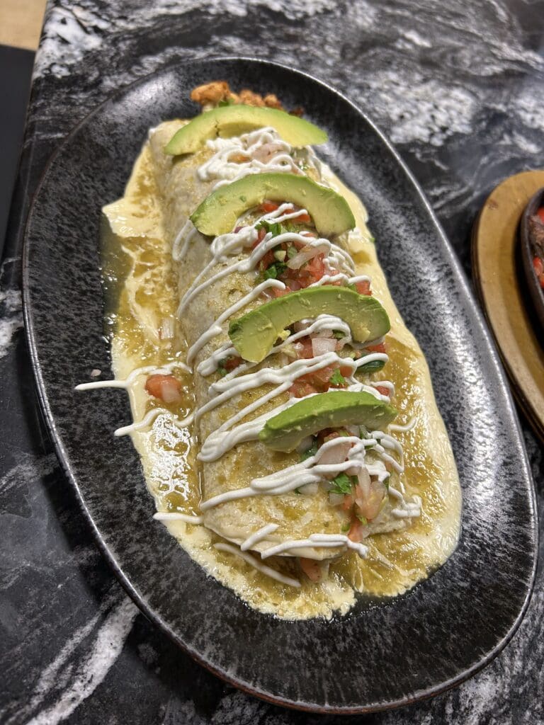 Patricio Burrito – another dish specific to just this restaurant, the Patricio Burrito was the size of my forearm, and it was packed with grilled steak, chicken, shrimp, chorizo, rice, beans, guac, lettuce, and sour cream, and topped with queso, salsa verde, pico, and avocado.  Make sure you bring a friend or two if you order this.