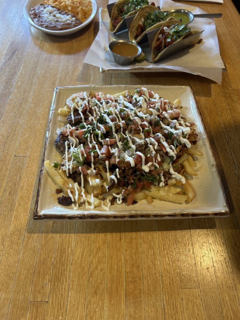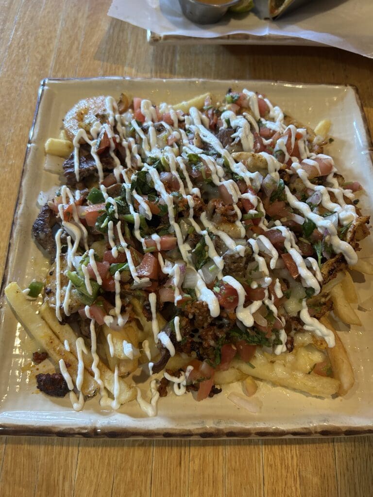 Texas Fries – we got to sample Los Portillo’s Texas Fries as well, and these were loaded with well-seasoned chicken, steak, chorizo, and shrimp, and they were smothered in pico, sour cream, and queso.  So decadent and such a great dish to share.