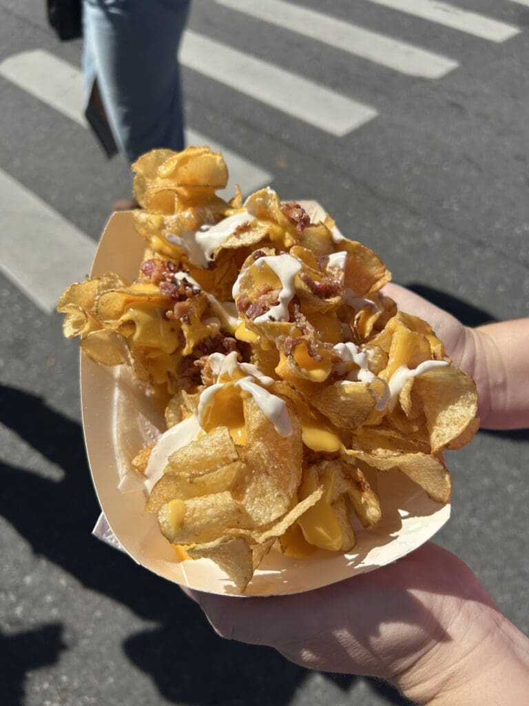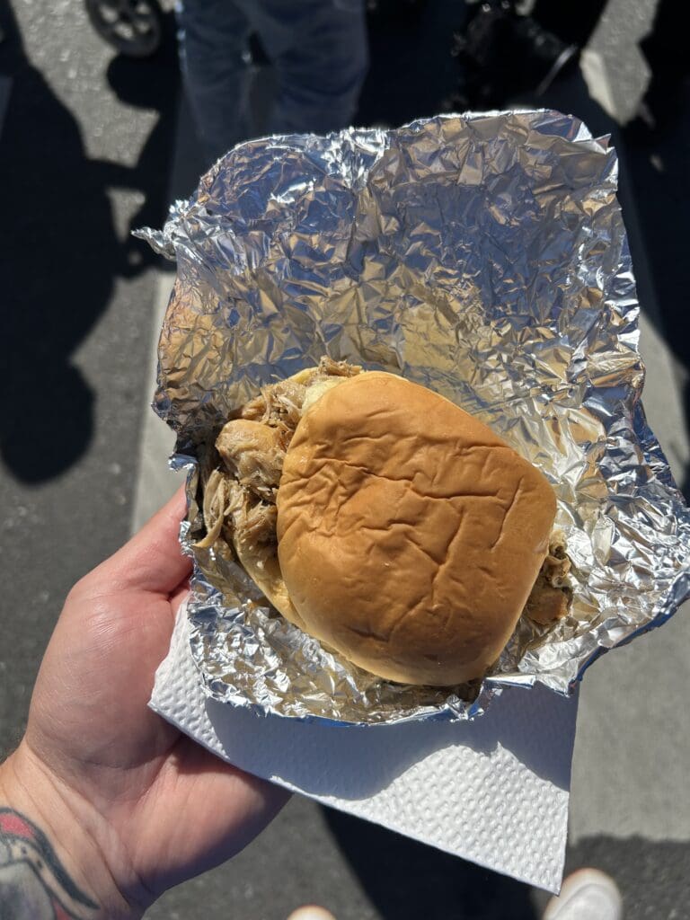 This blog will look a little different, as we were only able to sample one of two items per food truck that we visited. So a quick recap for each. At Almost Heaven Taters, we got a pulled pork sandwich and the butterfly fries. The pulled pork needed some sauce – unfortunately, it was pretty dry. The potatoes were solid though, covered in cheese, ranch, and bacon. My complaint last year was that the ranch tasted off-brand. This year, all the flavors married together nicely for a creamy, crispy bite.