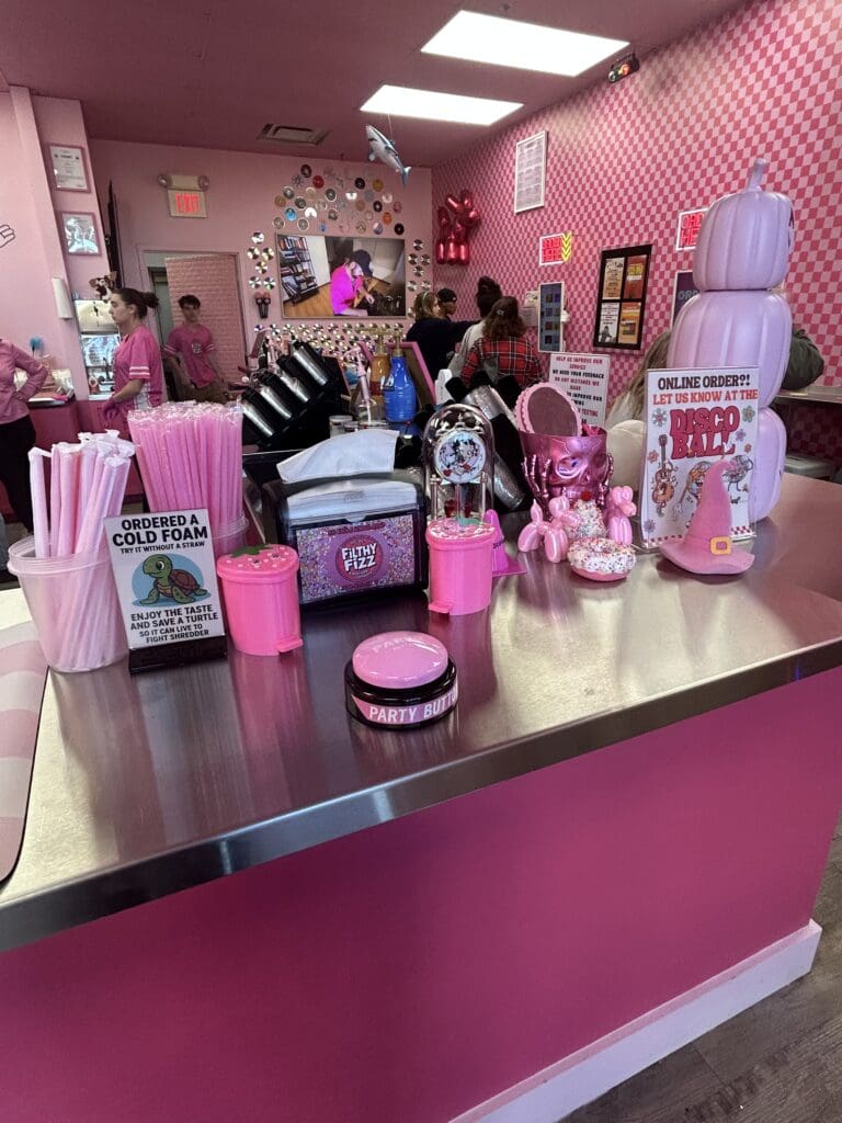 Filthy Fizz has the best ambience of any place we have ever visited. The staff is on another level when it comes to enjoying their job. They have done such an incredible job of setting this place up to be an enjoyable establishment to work at. Most of the staff are in high school or college, and they bring the energy all day every day. When you step into Filthy Fizz, the party is just beginning. They even have karaoke!