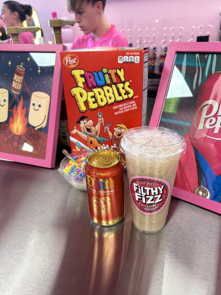 Yabba Dabba – this was a first for me, trying the “Cereal Criminal” Liquid Death flavor. In short, this is water that tastes like Fruity Pebbles. They added a splash of Coke and Vanilla cream. This one was interesting.
