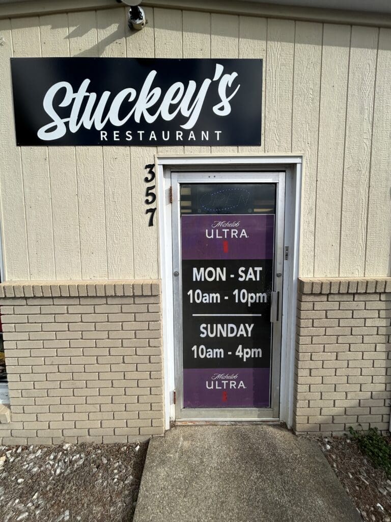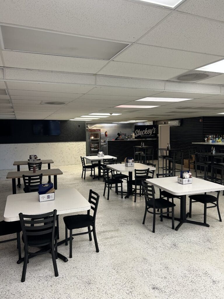 Many people don’t realize that Stuckey’s actually has a pretty large dining area. There is ample room to enjoy your meal. While there isn’t a ton of decorating, everything is very clean and I love how you can watch the staff cook your meal with the open kitchen. They also have a full bar where you can get drinks. All in all, this is a nice, clean place to grab a meal and/or a drink.