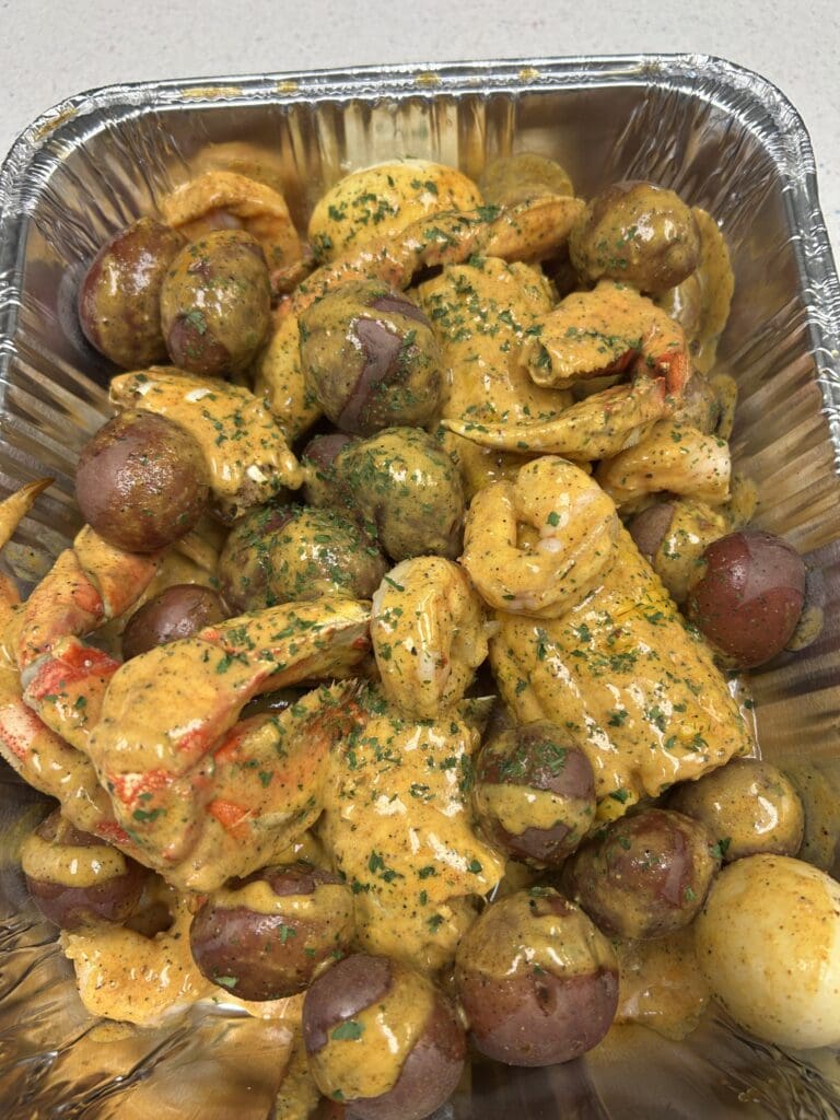 Crab Boil – this is one of the most insane things I have ever tried. We got a tray filled with Dungeness Crab, shrimp, potatoes, corn, and hardboiled eggs, absolutely drenched in their garlic butter sauce that I swear was made by the Gods. Just a heavenly dish.