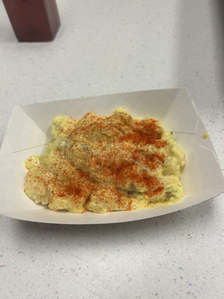 Potato Salad – the potato salad was so creamy and sprinkled with paprika.