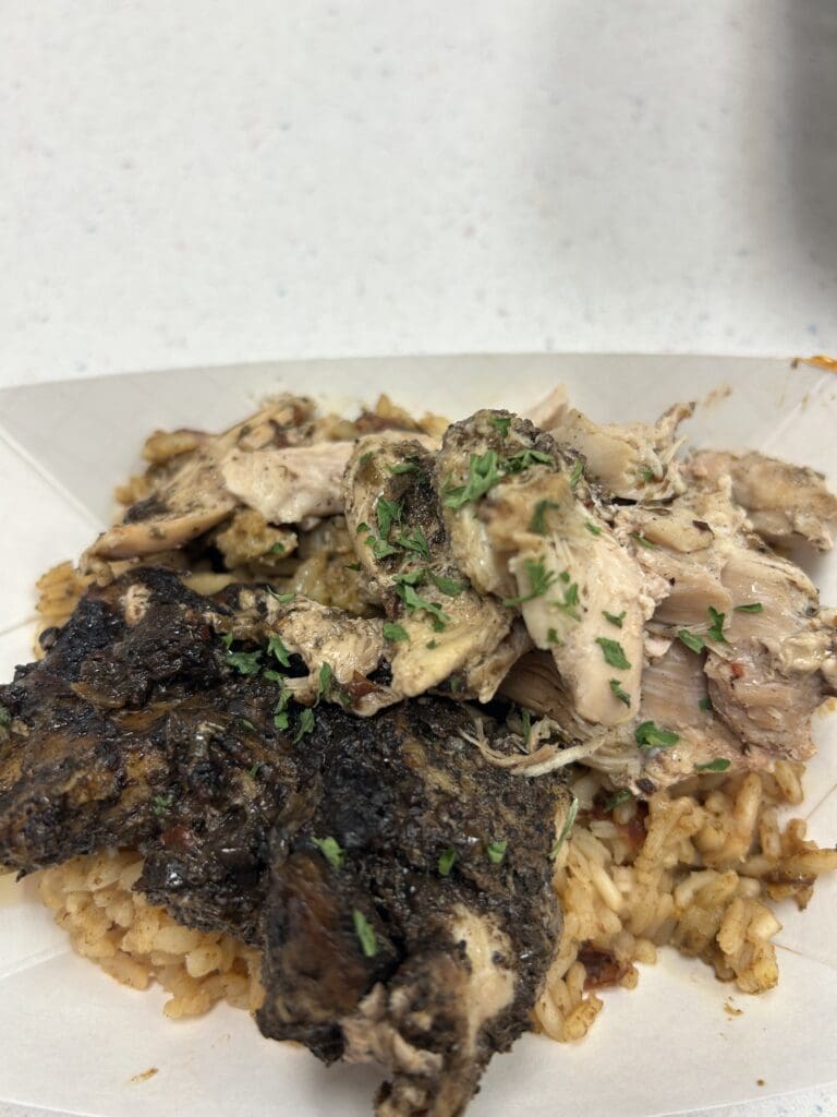 Jamaican Jerk Chicken – the island vibes are strong here, with tender, spicy Jamaican Jerk chicken over a bed of seasoned rice.