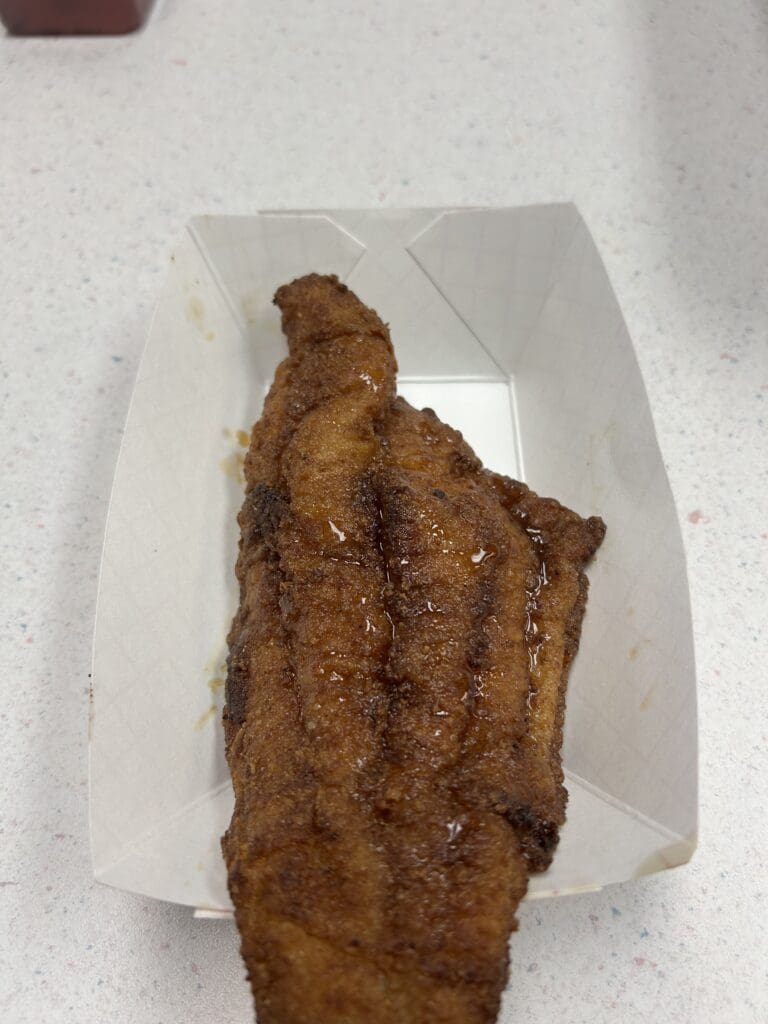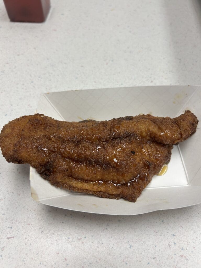 Catfish – unreal fried catfish. The breading itself was the most flavorful I have ever tried, and then you get the tender, fatty meat of the catfish. They even drizzled honey butter on it. Insane dish.